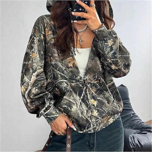 Camo Zip-Up Hoodie Fashion Trend Multicolor Casual Style Cardigan Zipper