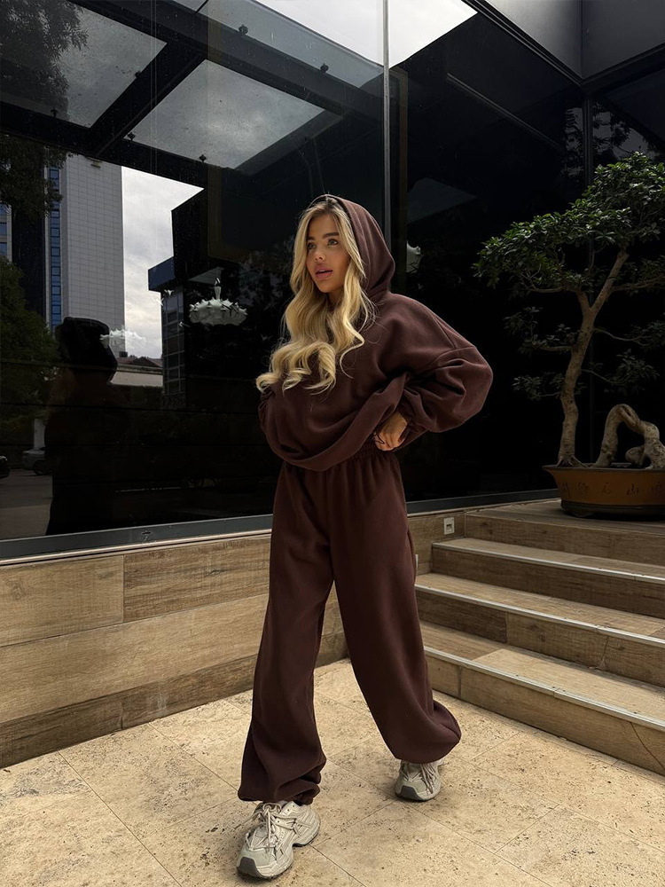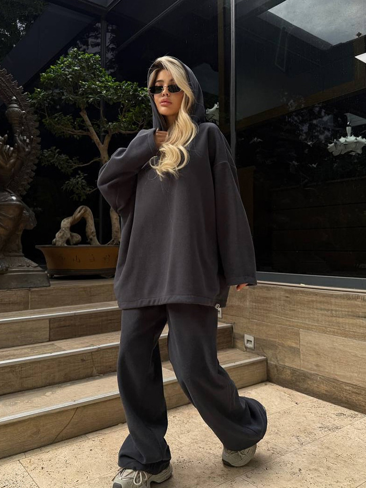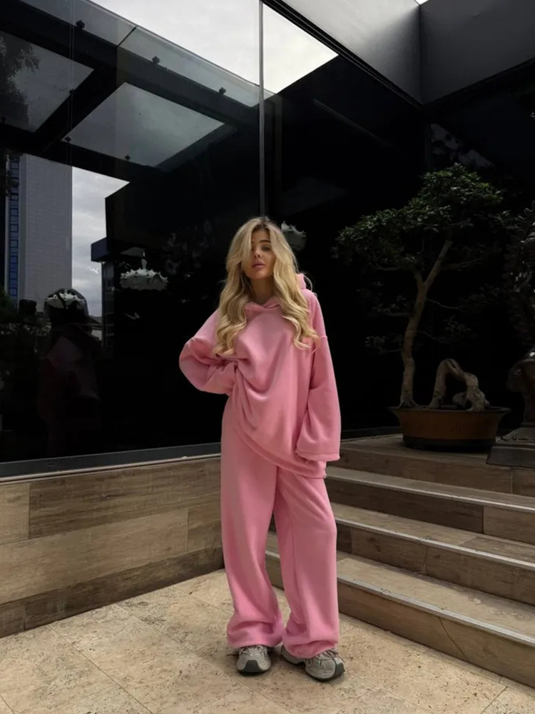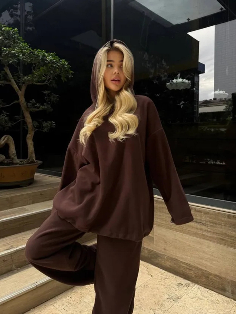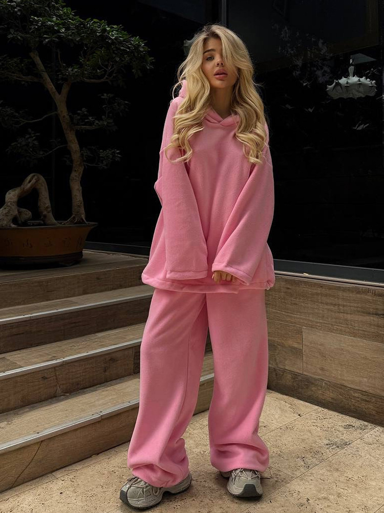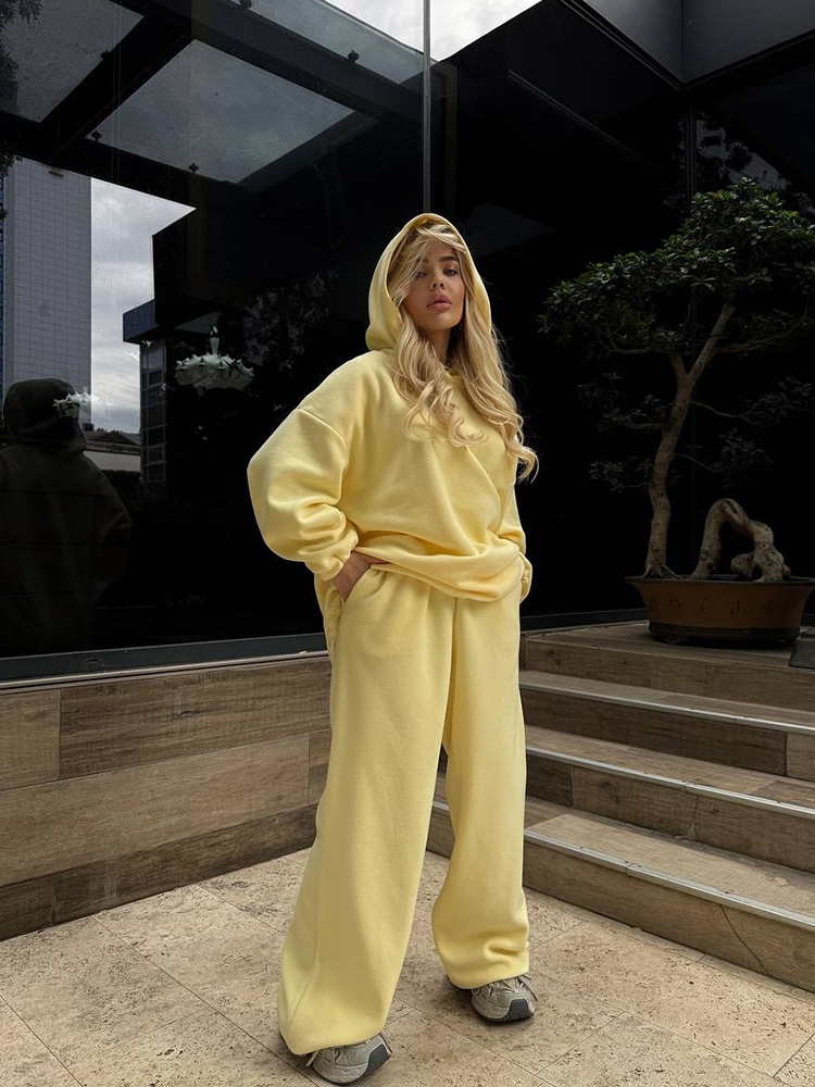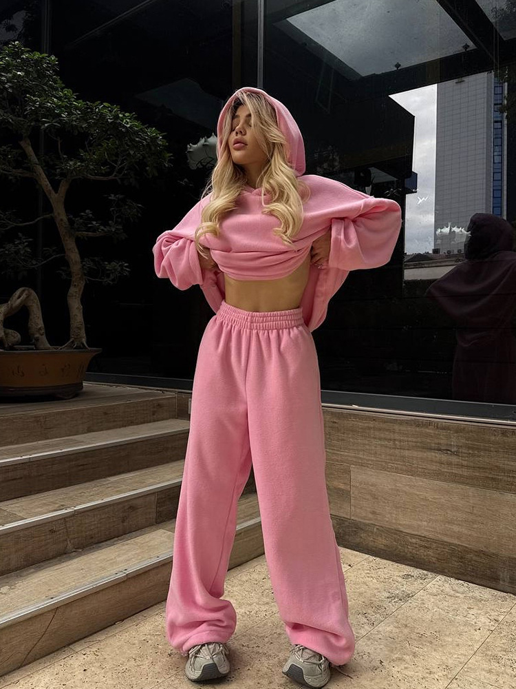Stay cozy and stylish with this Casual European and American Polar Fleece Women's Suit. Crafted from soft polyester fleece, it features a hooded design and long sleeves for added warmth. Available in yellow, pink, brown, and gray, with trousers in sizes S to XL, this set combines comfort and casual elegance perfect for everyday wear or relaxing weekends.