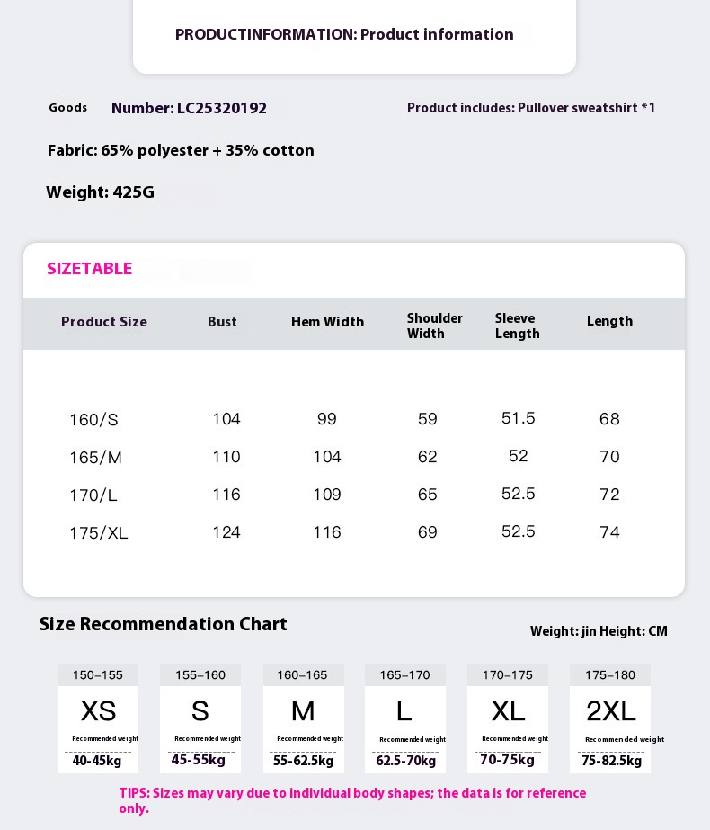 SIZING Note: Asian sizes are 1 to 2 sizes smaller than European and American people. Choose the larger size if your size between two sizes. Please allow 2-3cm differences due to manual measurement.